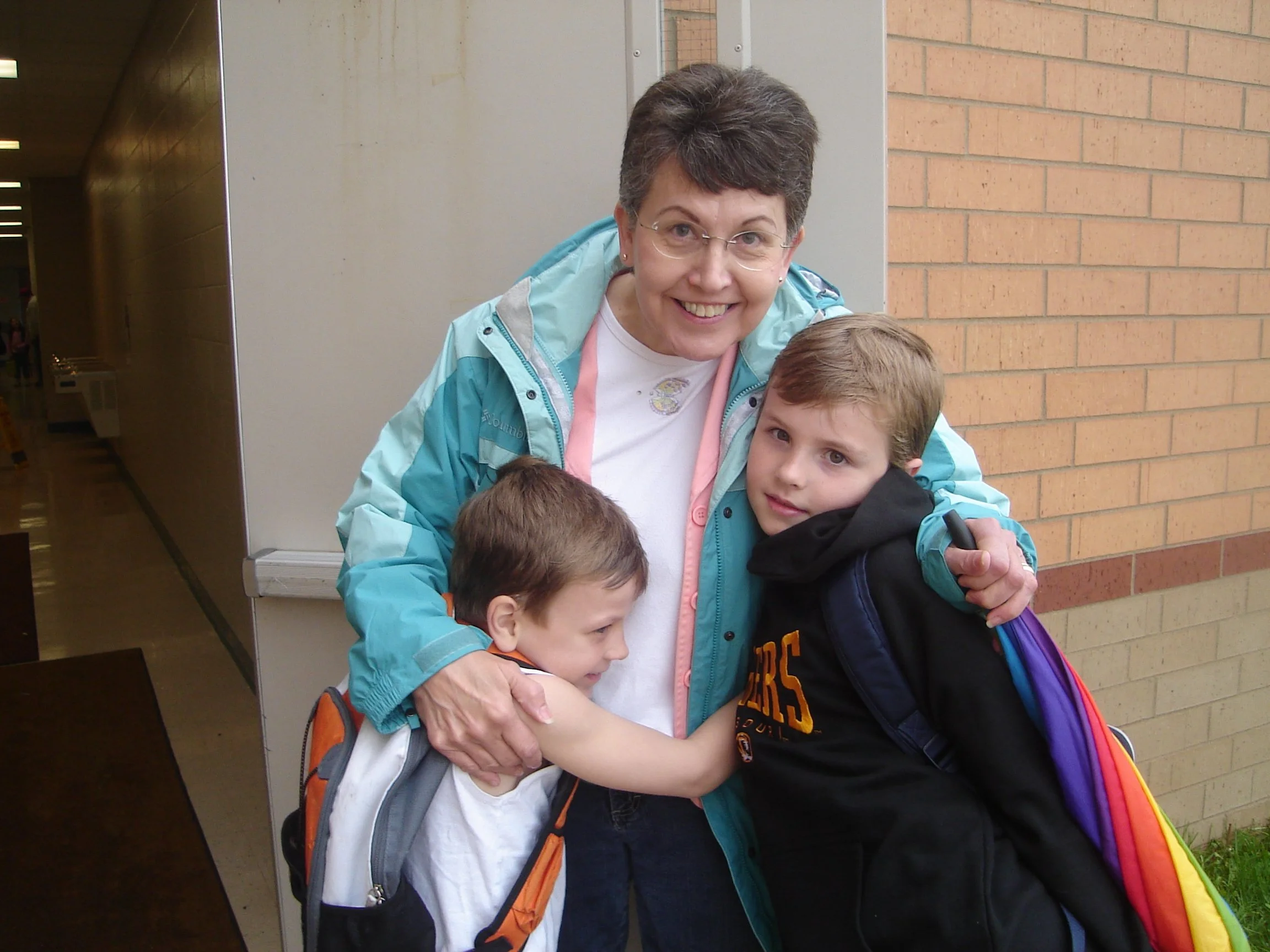 She is my dad's sister, and for all three of John's first years of school, she has been the guardian of that entrance. She asks for the job. Standing at the door to greet every single child who enters it every morning of their lives.