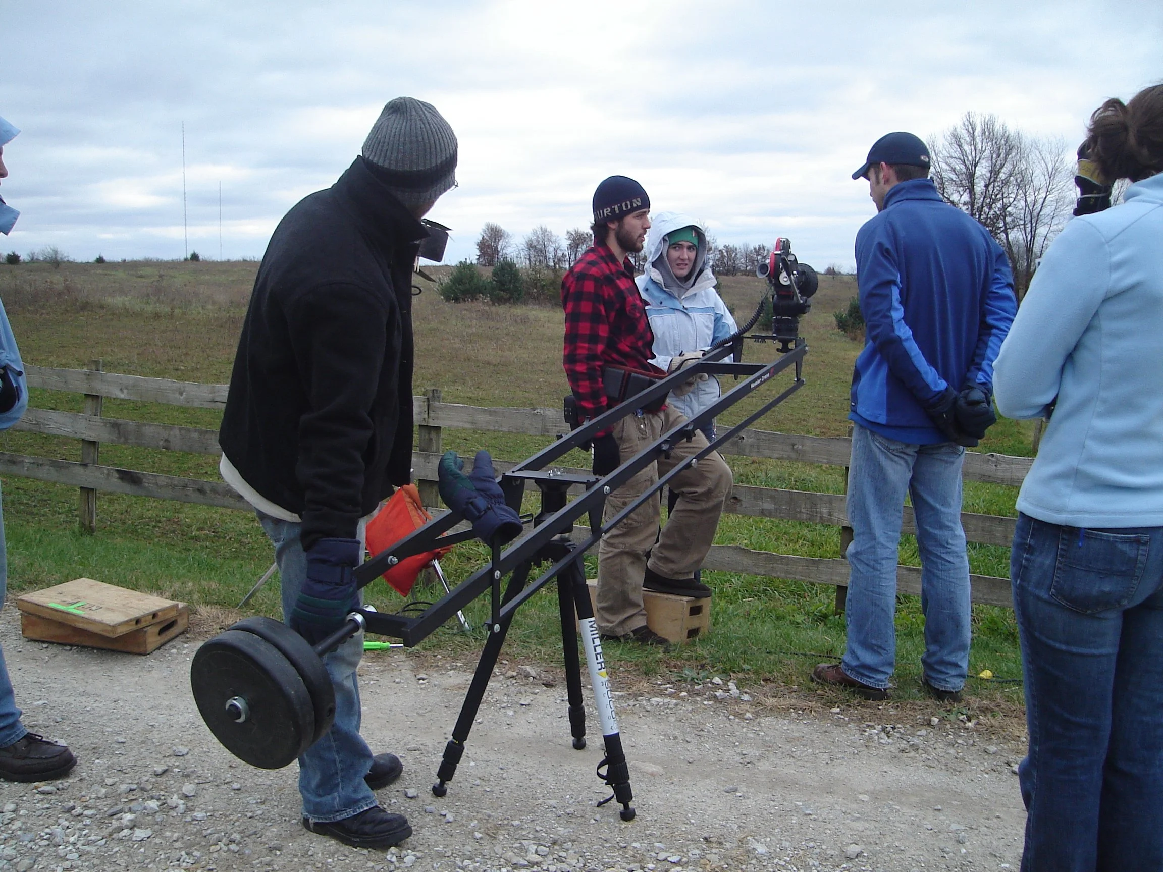 Then I saw this. The guy in the red shirt, Nick, is also in film school - for cinematography. The director (blue coat and hat) called Nick the DP (director of photography). Next to Nick is the assistant DP. The head of the video department at work is in the gray coat and hat helping the DPs. I was feeling a little giddy here. My movie career was ON.