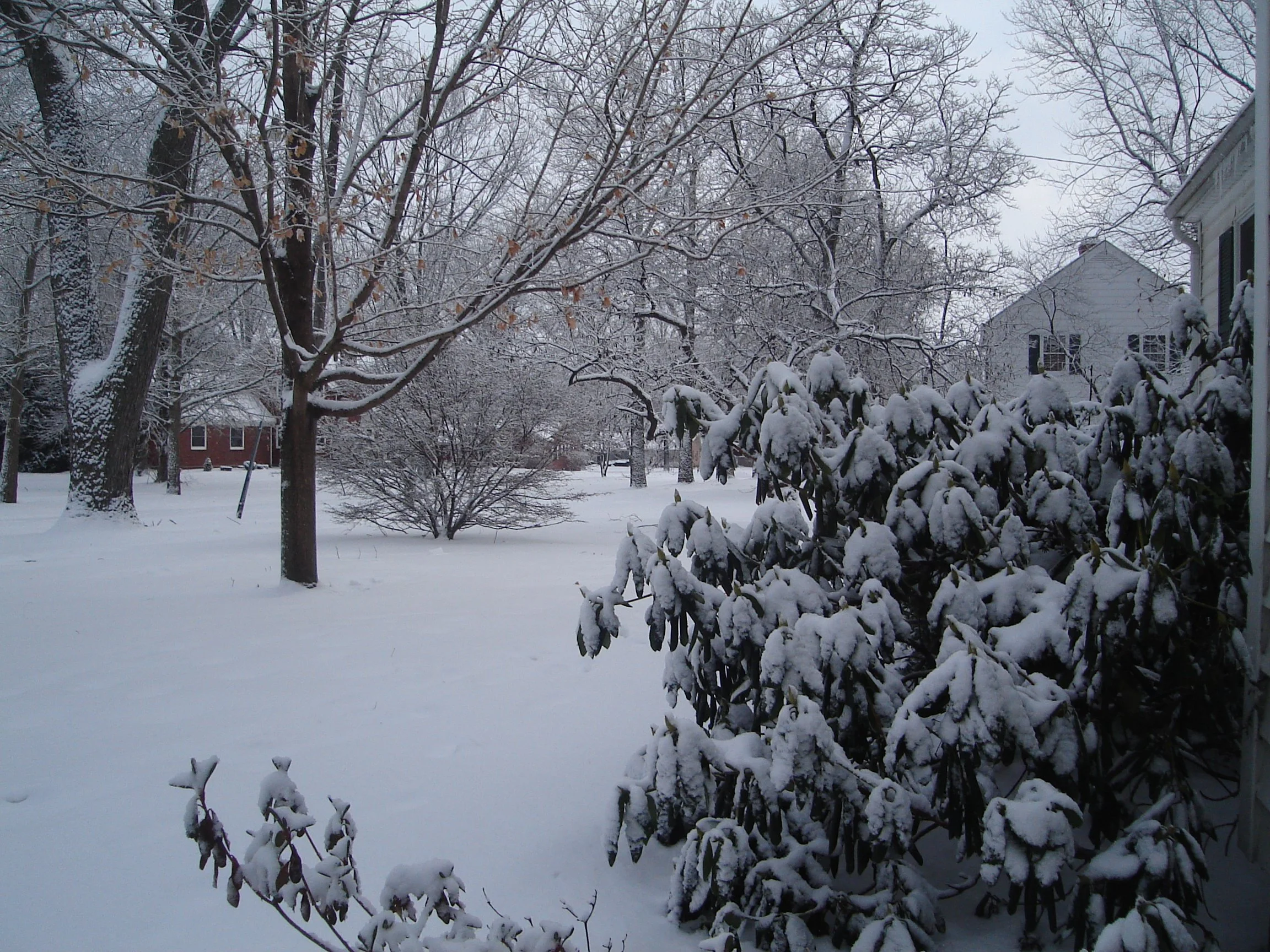So I guess we'll have a white Christmas this year. I should have taken a picture right across the street. Dave's house catches snow like a perfectly frosted gingerbread house. Only it's a beautiful dark gray instead of brown. I don't say "Dave's house" as if you know him, but simply because it's a pretty view from my house that I've mentioned on the blog before. If we ever move, I think I'll remember this house more for that poetic view than anything else. "Remember how Dave's house looked at Christmas time?" I'll probably say things like that. And, remember how Dave actually raked?