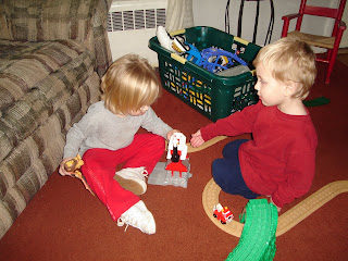 Today, we hung out with our friend Zoe. Jake is very into trains, and she happily played along. She lives just down the street, and her mom is one of my best friends. We probably won't always live just down the street from each other. It's very cool, and I want to remember it.